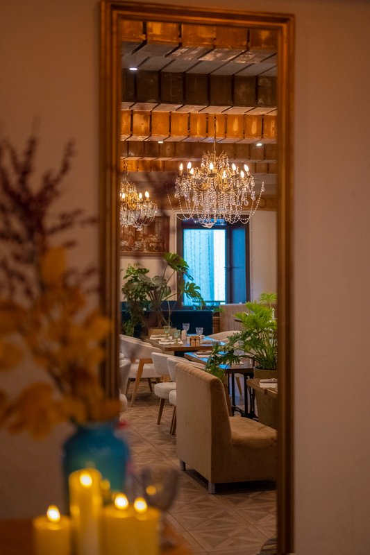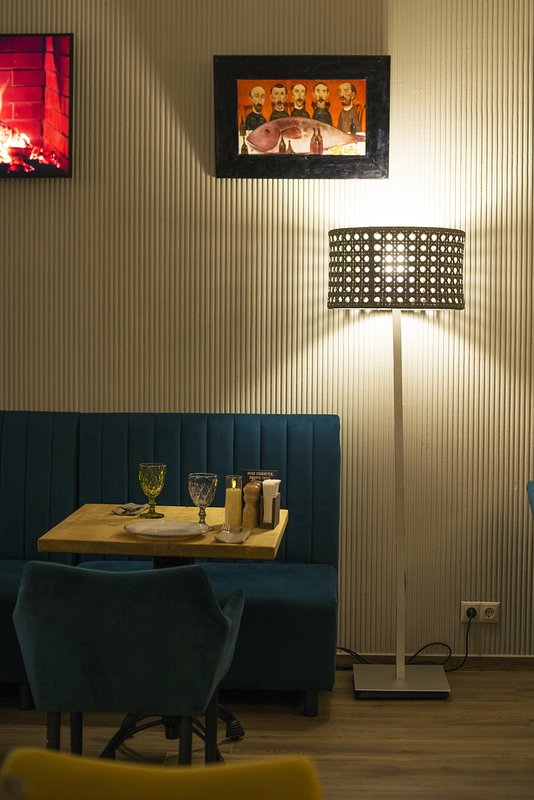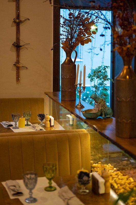 Мне понравилась кухня - еда была вкусной, а обслуживание быстрым, несмотря на то, что в зале было много людей. Мы сидели в небольшом зале, который показался немного тесноватым, зато понравилось оформление — во дворе были красивые украшения, красные банки, веточки и даже фотозона, что создавало приятную атмосферу.