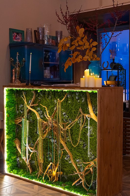 В принципе мне все понравилось, особенно хорошее обслуживание официанта. Он все подсказывал, отвечал на вопросы по напиткам и еде. Больше всего запомнились вкусные коктейли и блюда. Могу отметить, что интерьер также произвел на меня положительное впечатление, в том числе и бусы.