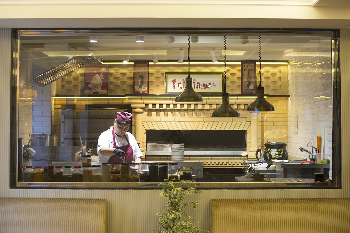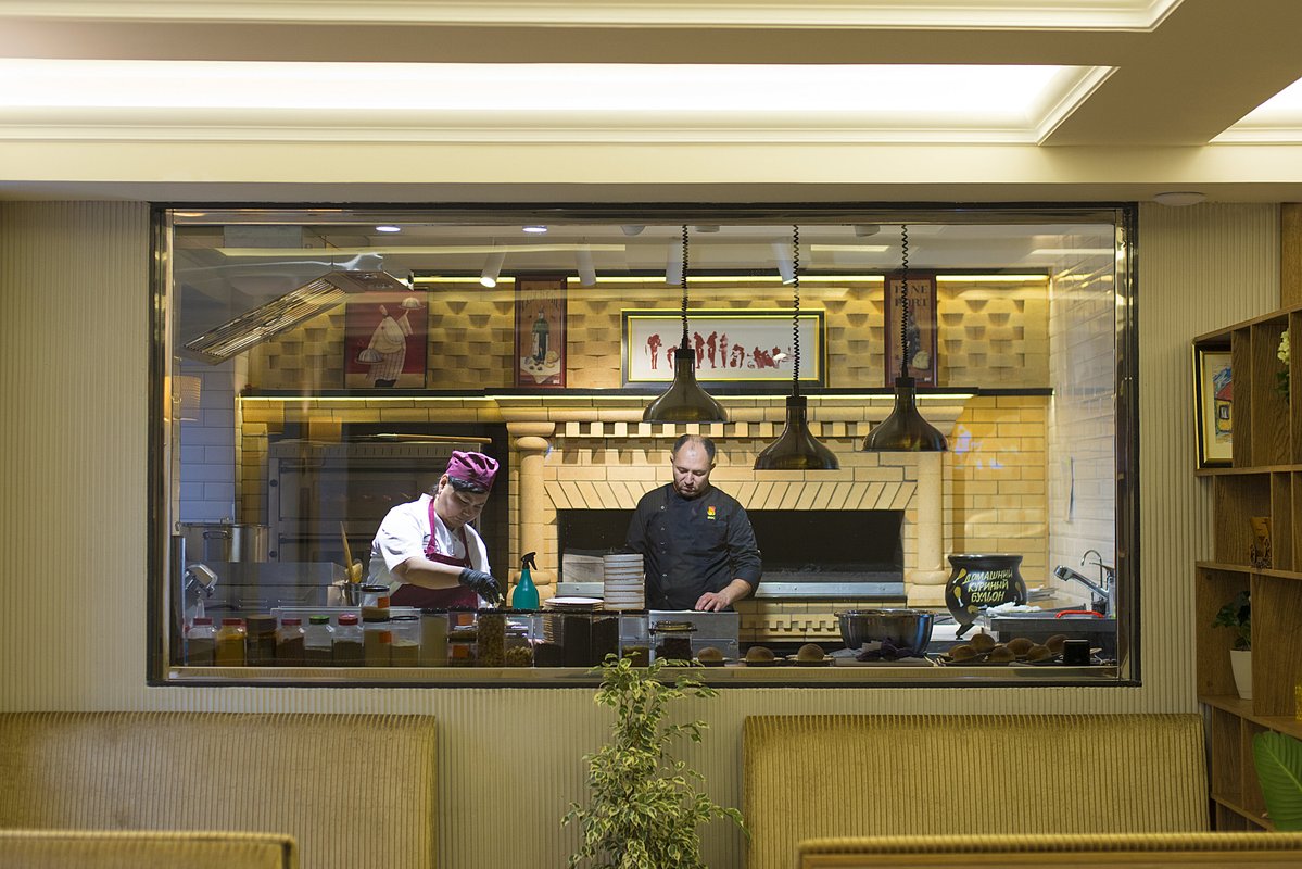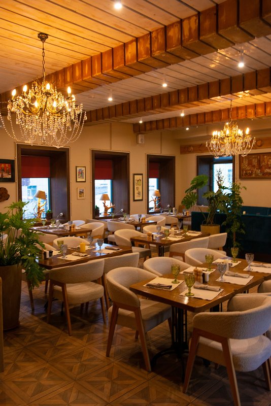 В ресторане тёплая и уютная атмосфера, которая создаёт ощущение комфорта с первых минут пребывания. Вежливый персонал встречает с улыбкой, что только усиливает положительные эмоции от посещения.